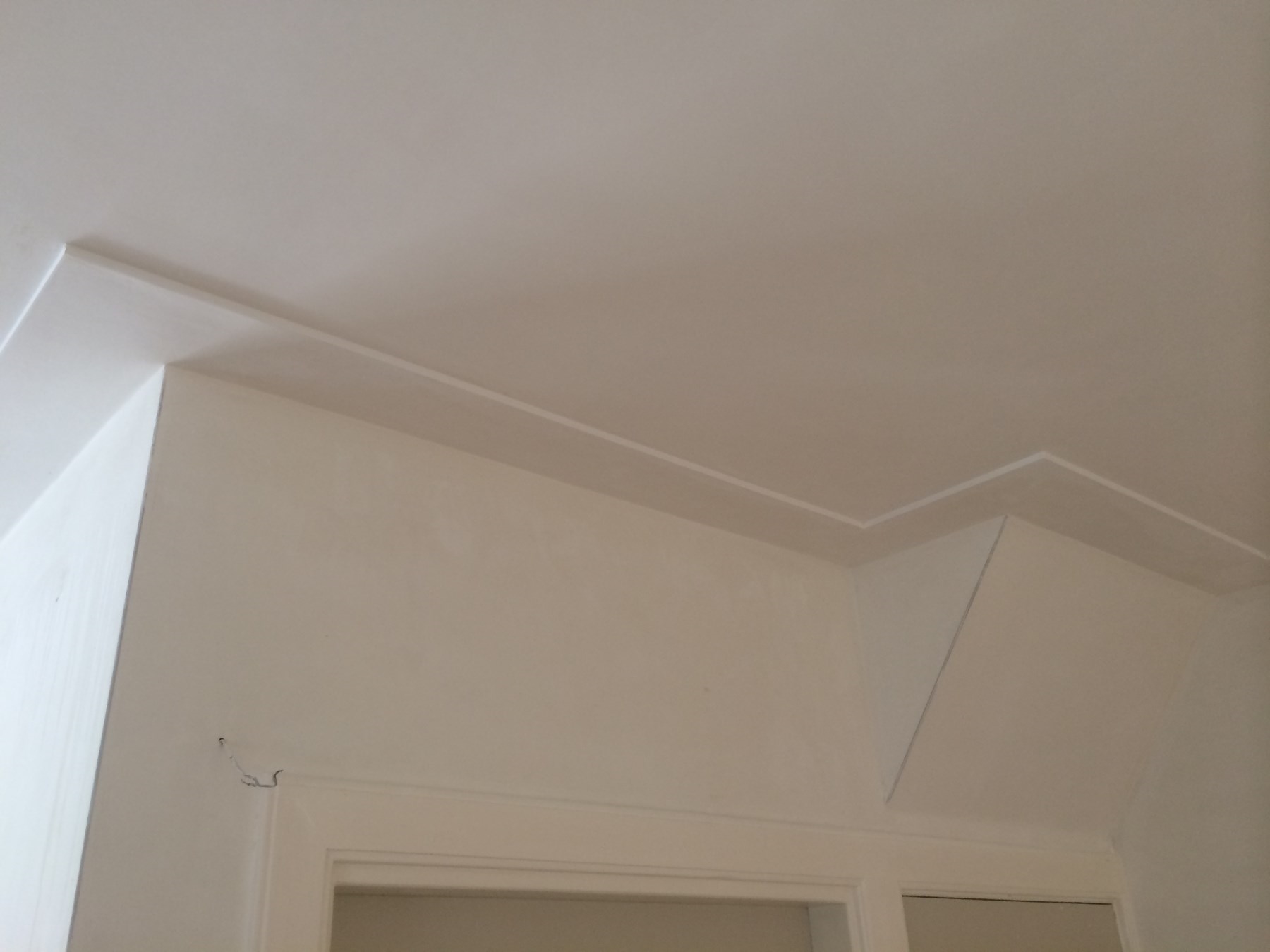 De holle hoek wordt van muurwerk naar plafond erin getrokken door middel van een holle hoek schopje. Dit zorgt voor een nette en ronde afwerking tussen de muur en het plafond.