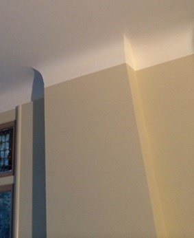 Platte plint wordt langs buitenranden van plafonds gestucadoord ter decoratie. De platte plint zorgt voor een strakke en moderne uitstraling van uw woning.